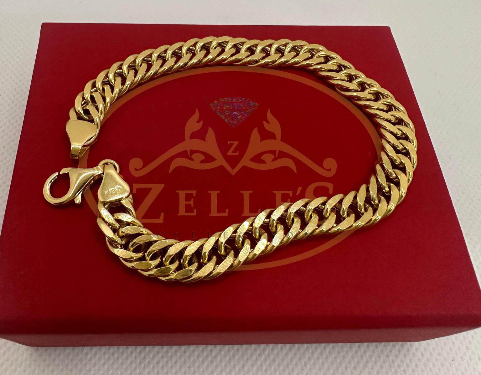 This exquisite bracelet is a perfect example of exceptional craftsmanship and the superior quality of 18k gold. Featuring a classic curb link design, each link is carefully shaped and polished to create a sleek, comfortable fit. The high purity of the 18k gold (75% pure gold) gives the bracelet a deep, vibrant color and a lasting radiance. Complete with a sturdy lobster clasp, this piece is a beautiful and durable investment to be cherished for years.